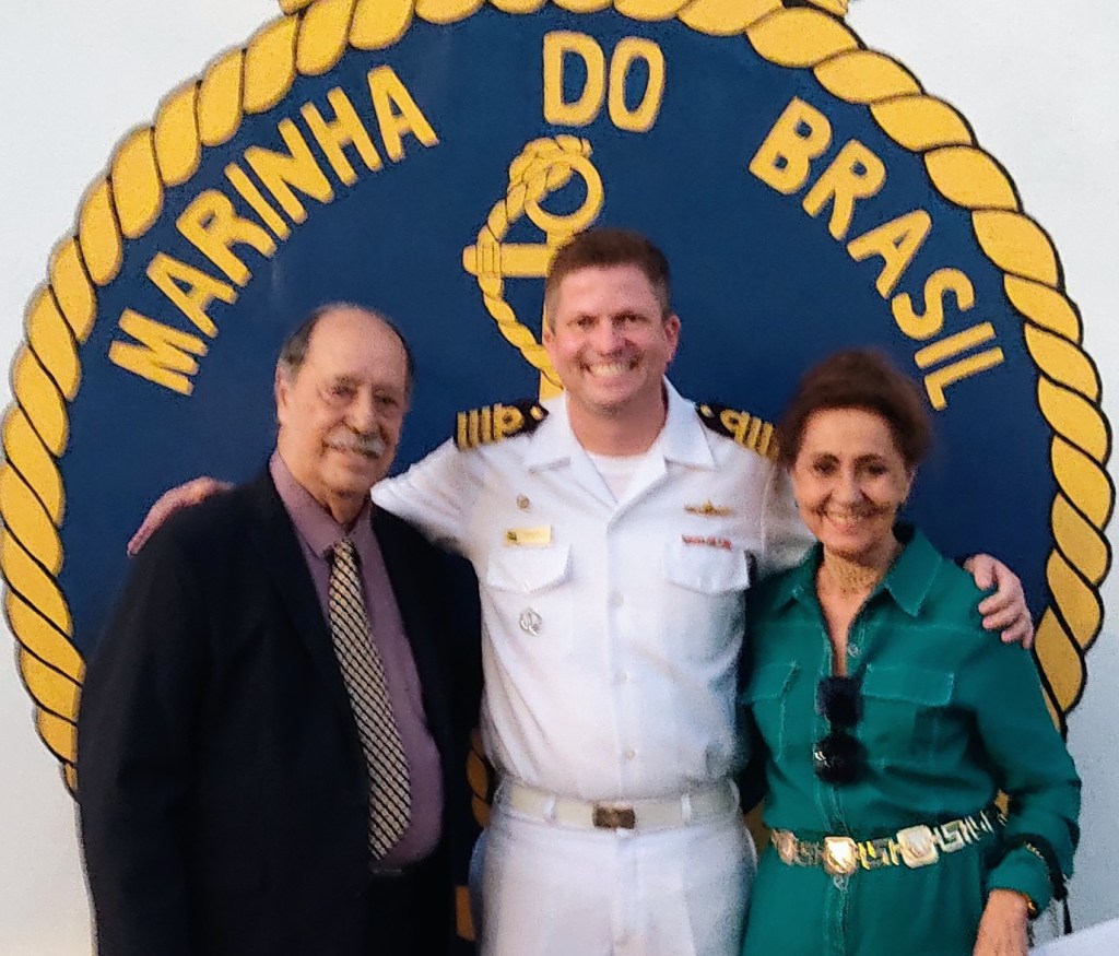 Na foto, momento em que após o recebimento do título de “Tripulante Honorário” fomos fotografados, minha esposa Vanessa e eu, com o tripulante mor da Capitania dos Portos, o amigo Cmte. Wendell Petrocelli.