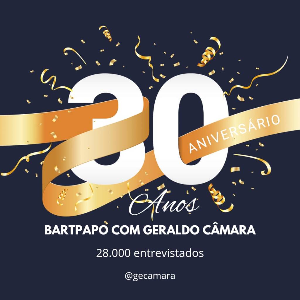 Se me permitem existem glórias passageiras na vida de um homem, de um profissional como completar 30 anos com o mesmo programa de televisão no ar, ininterruptamente. Certamente é uma marca. Por isso, licença para destacar hoje a marca de 30 anos do “Bartpapo com Geraldo Câmara”.