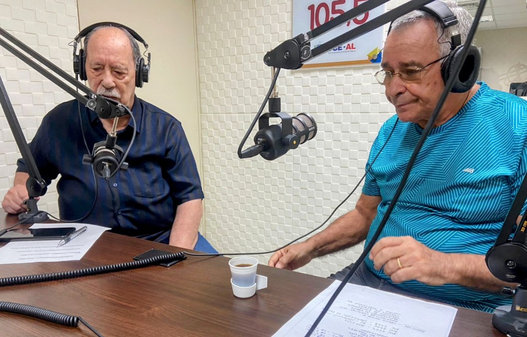 Os abraços impressos vão para o competente e irrequieto Geoberto Espírito Santo que, última semana ministrou um curso de “Transição Energética” e parece até ser movido também por eletricidade. Sempre um sucesso, a você meu abraço, querido amigo. Na foto, em entrevista na Rádio Senado Cidadã.