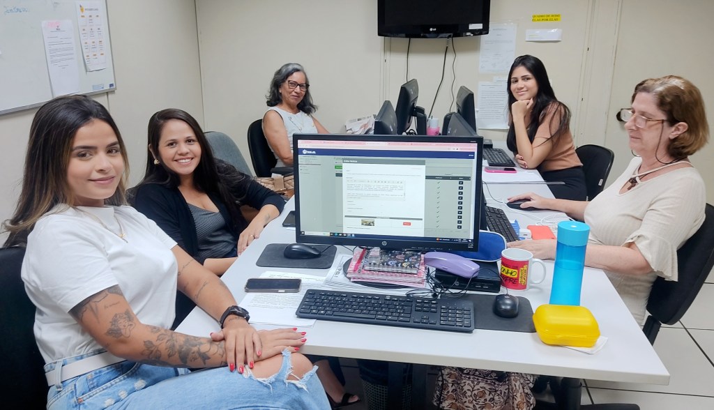 Os abraços impressos de hoje vão para toda a equipe da Diretoria de Comunicação do TC-AL mas que está aqui representada por uma pequena parte. No entanto, essas meninas são muito dinâmicas: Júlia, Ana Nery, Ana Fátima, Letícia e Eliane. Uma pequena, mas representativa parte.